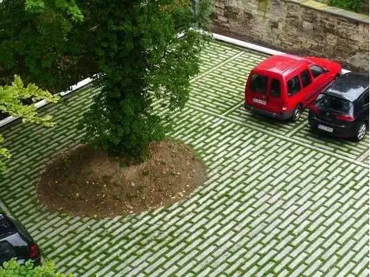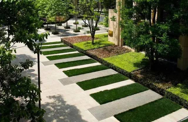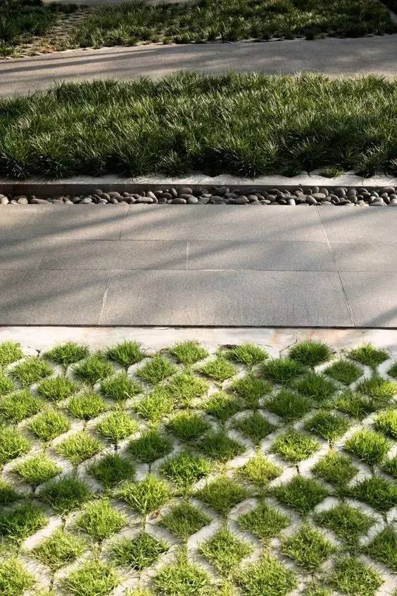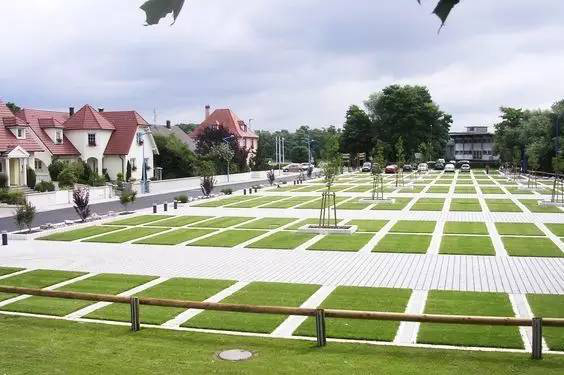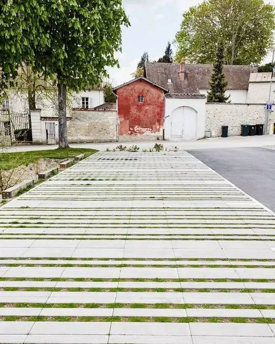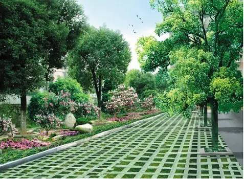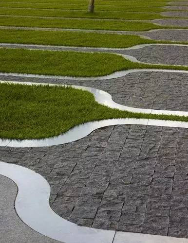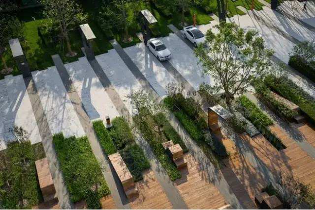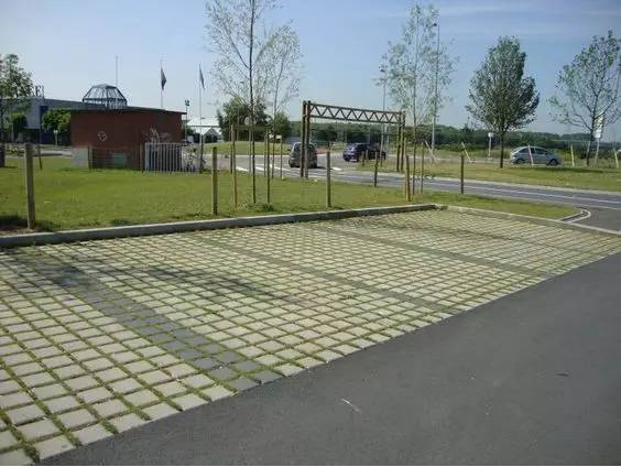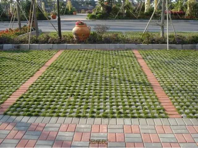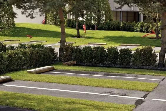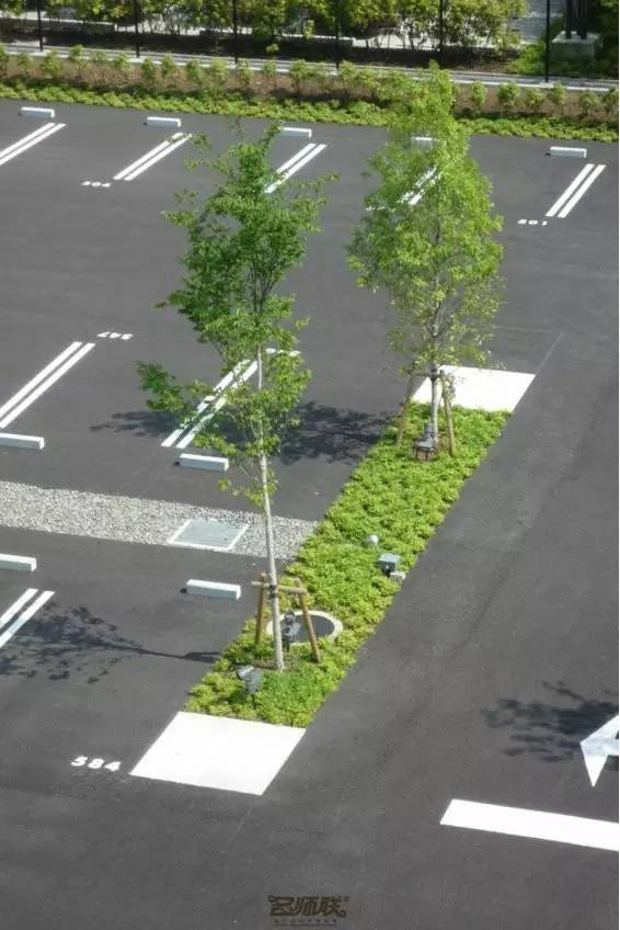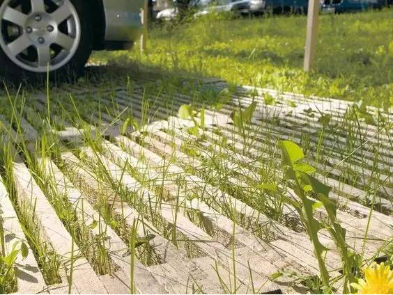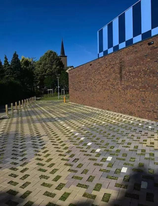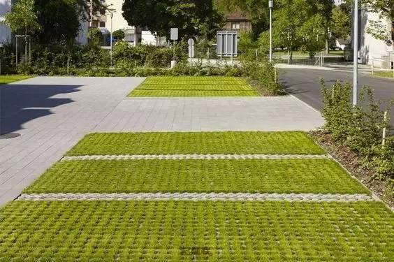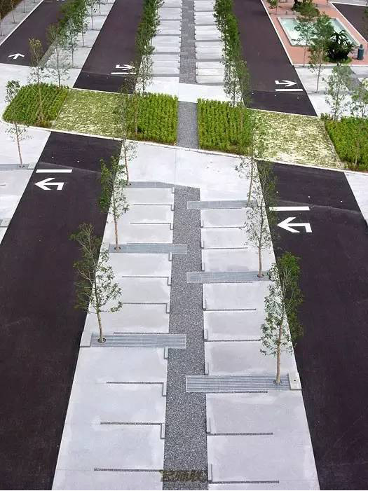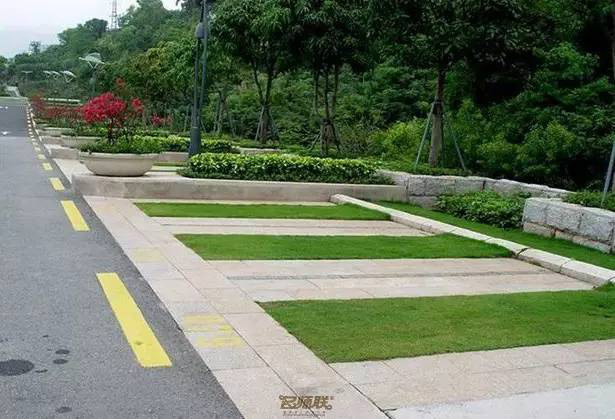 利于更換及修補的防滑鋪裝材料,以及它的透水性,加上鋪設(shè)尺寸符合人體工程學(xué),真是人性、環(huán)保、安全而美觀。而停車場周圍的綠植,起到降溫作用,視覺上也美化了場景,愉悅內(nèi)心,安全出行,再好不過。