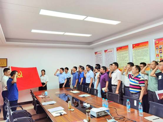 最后,全體黨員面對鮮紅的中國共產(chǎn)黨黨旗,莊嚴(yán)地舉起右手,握緊拳頭,集體宣讀入黨誓詞,重溫入黨時(shí)的莊嚴(yán)承諾和堅(jiān)定決心。紛紛表示,要不斷提高黨性修養(yǎng),堅(jiān)定理想信念,自覺踐行黨的宗旨,充分發(fā)揮先鋒模范作用,切實(shí)把初心使命變成銳意進(jìn)取、開拓創(chuàng)新的精氣神和埋頭苦干、真抓實(shí)干的自覺行動,以優(yōu)異的成績向建黨99周年獻(xiàn)禮。