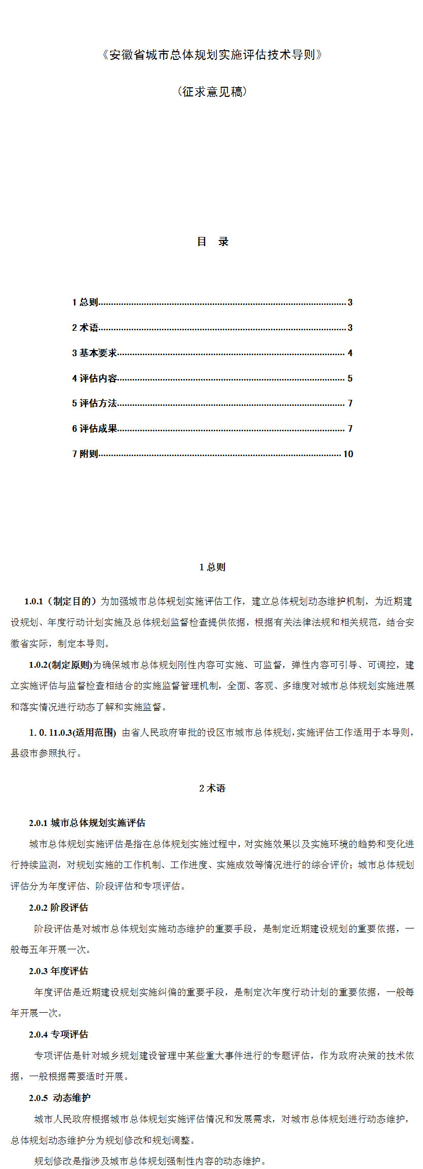 《安徽省城市總體規(guī)劃實(shí)施評(píng)估技術(shù)導(dǎo)則》
